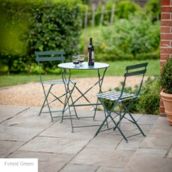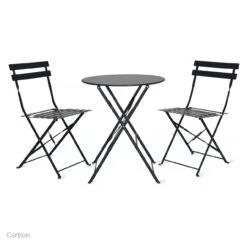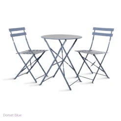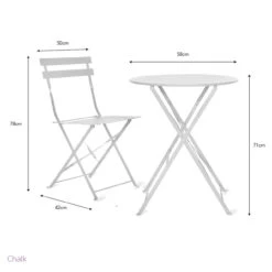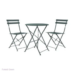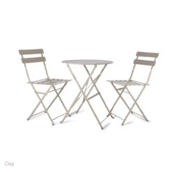 The table and chairs fold flat so can easily be stored in a garage or shed over the winter. Made from powder-coated steel, for weather resistance.