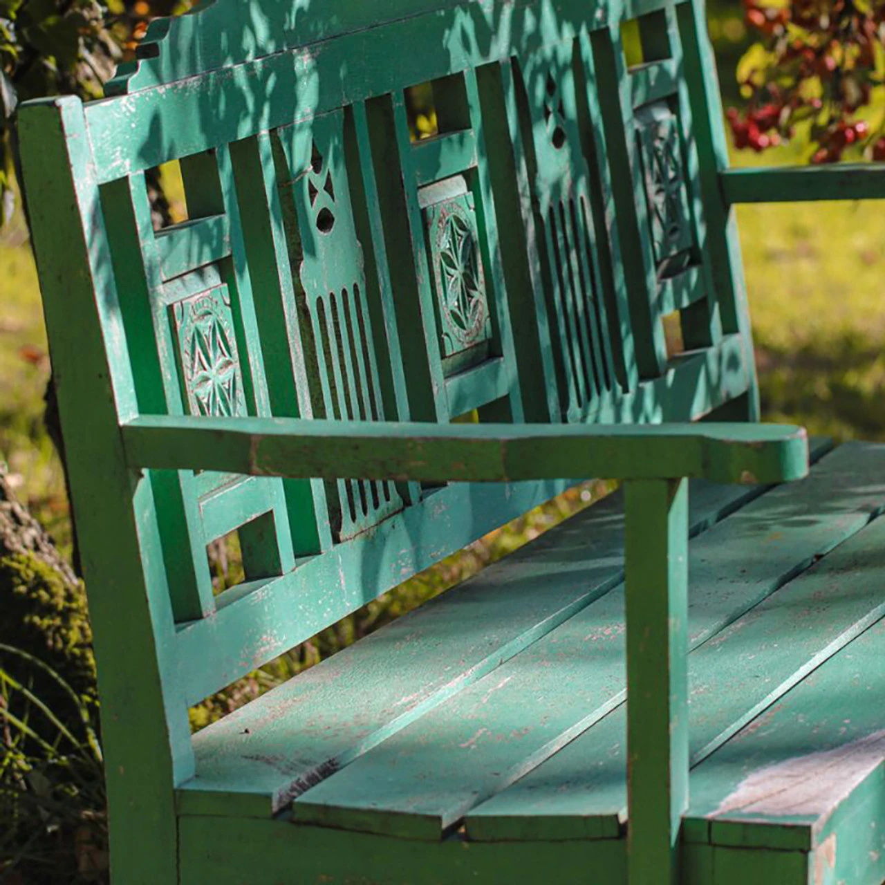 This mango wood bench in vivid aqua blue makes a striking statement, introducing instant colour and glamour to any garden.