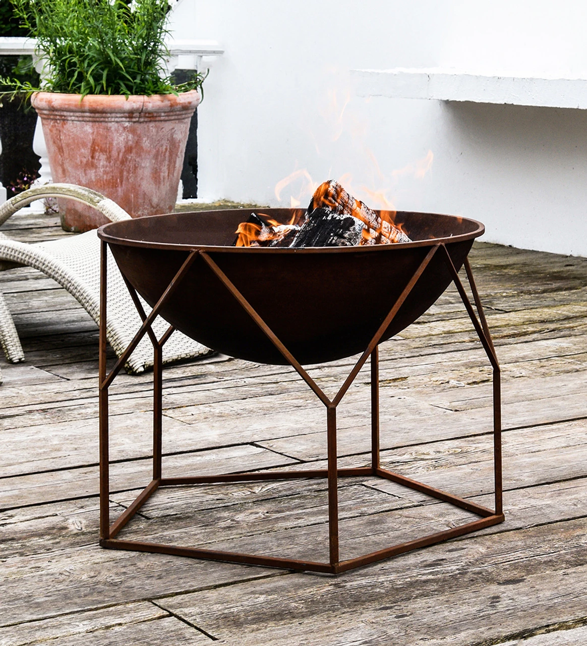 Bring a cosy feel to your outdoor space with the Buckingham fire bowl. The structured stand has a modern geometric design, serving as an attractive yet practical focal point, adding warmth and interest to any garden or patio. Neatly position in the centre of your seating area to take outdoor gatherings long into the night.