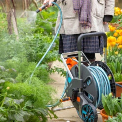 An easy to move trolley and hose makes watering effortless. The trolley has an ergonomic crank, soft plastic components, and a sturdy hose guide making winding the hose a smooth and lightweight operation. Featuring all the system parts you will need, it’s super durable and frost resistant too.