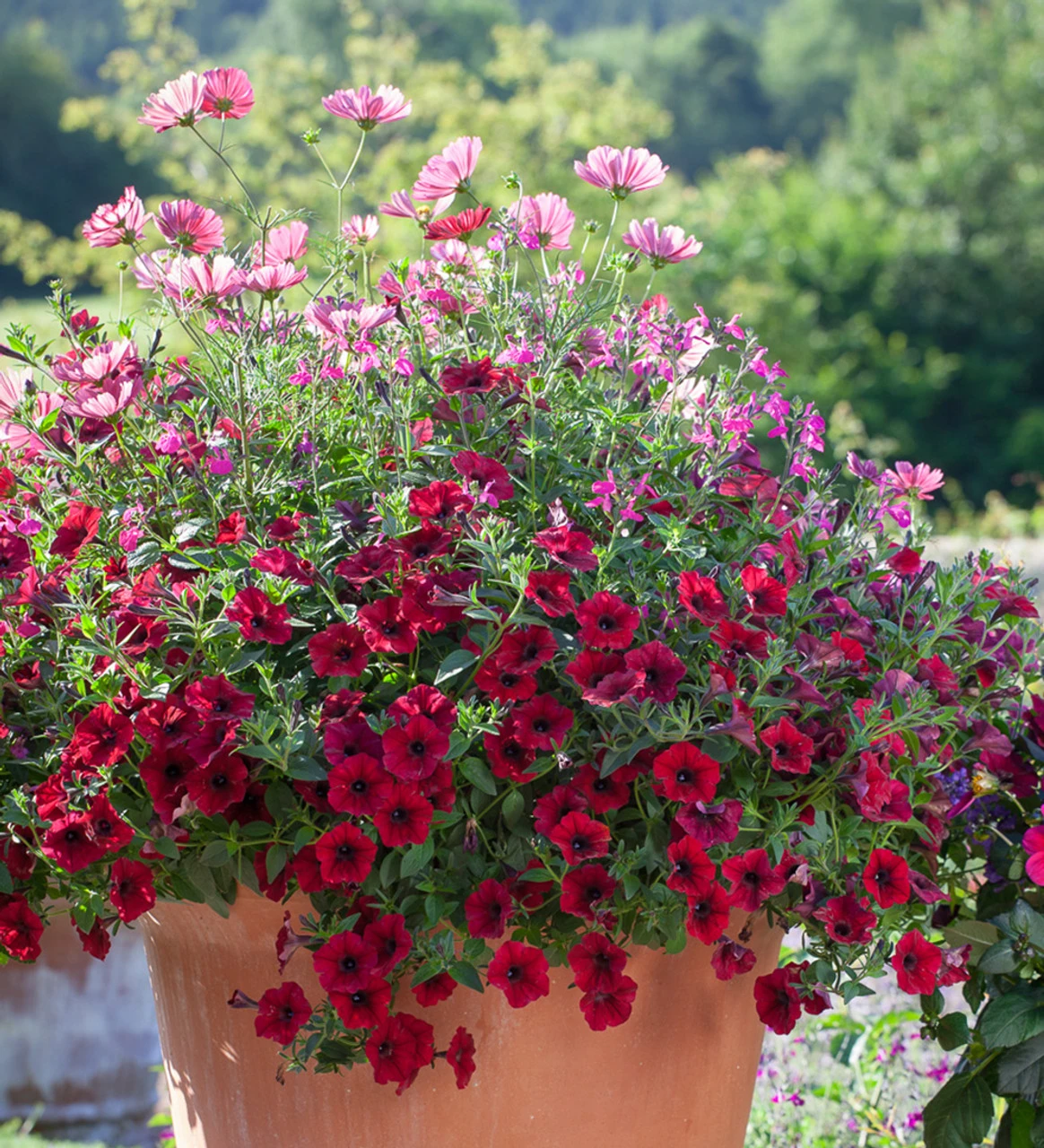 A brilliant, low-maintenance combination for clouds of carmine and crimson, flowering from June until your first hard frost.