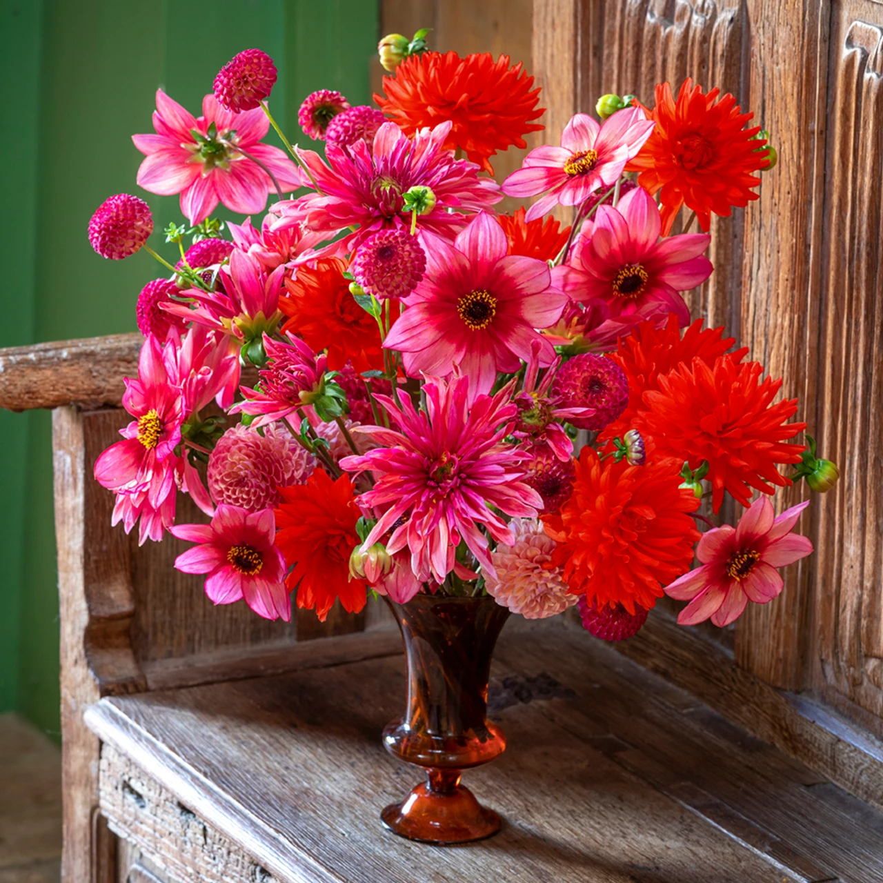 Dazzling coral and pink medley which radiates brightness and cool in the garden and vase.