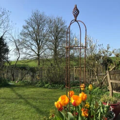 An Agriframes plant support. These decorative obelisks have a simple structure with decorative spiral finial, working as a feature in its own right as well as providing a versatile support for any small climber.