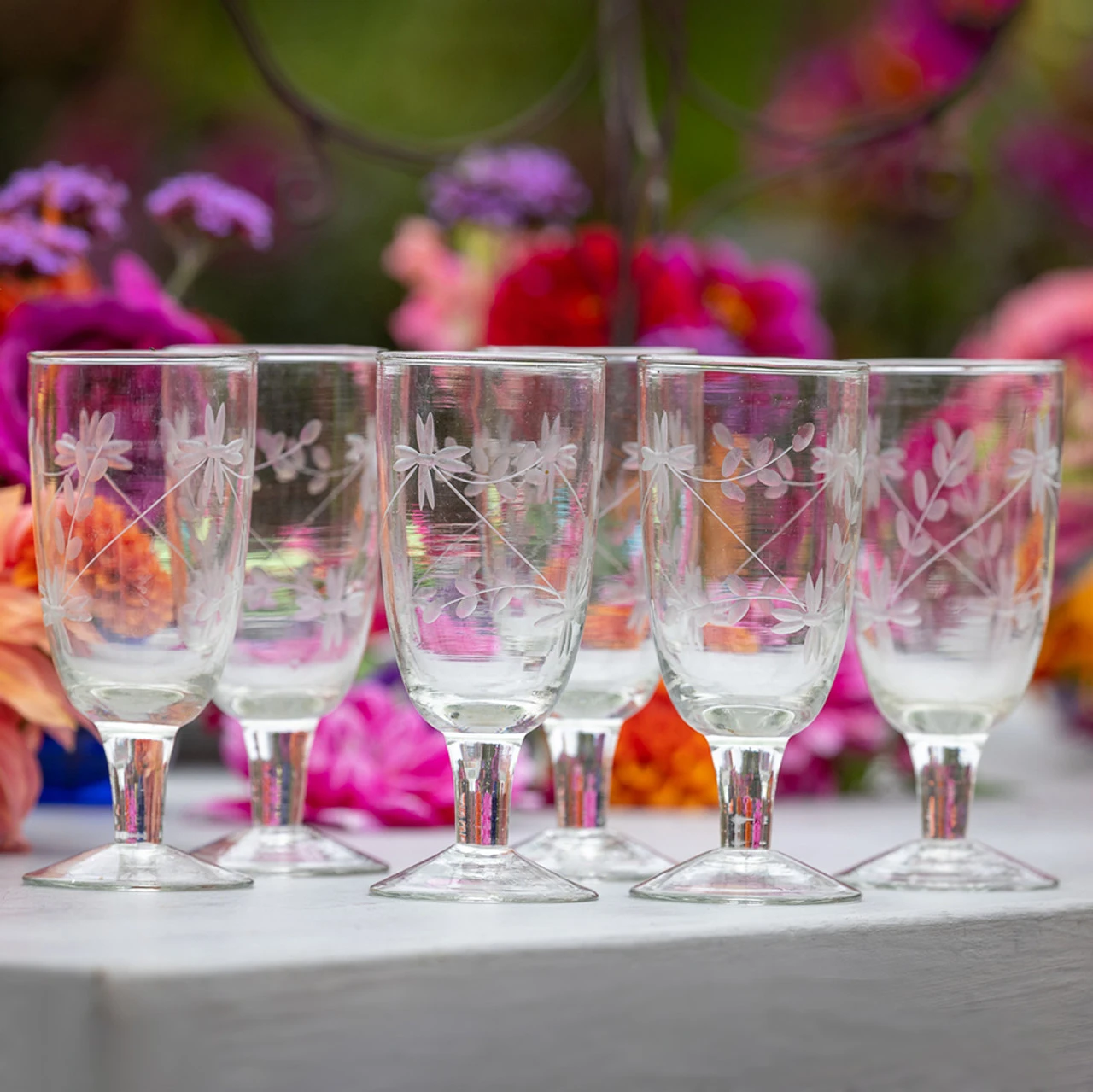 With etched vintage flowers, these beautifully delicate glasses look fabulous on your table.