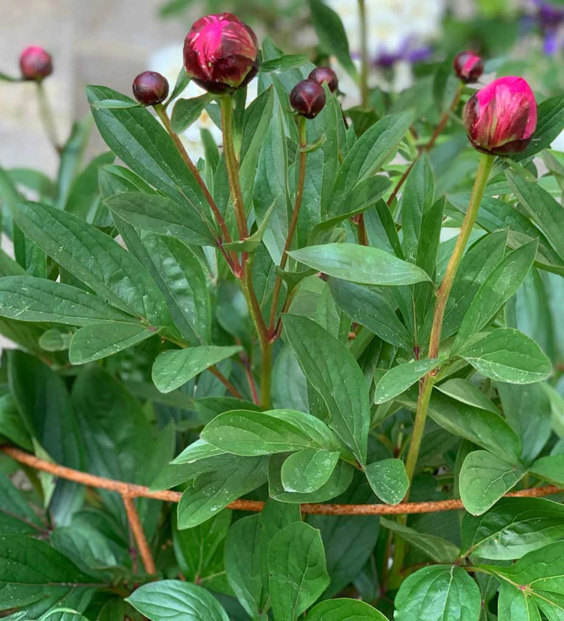 An Agriframes plant support. These two-ring supports are designed for peonies but work brilliantly for agapanthus, alstroemeria, tall salvias and campanulas too. The plant supports could also be used in a border for delphiniums, dahlias or lilies.