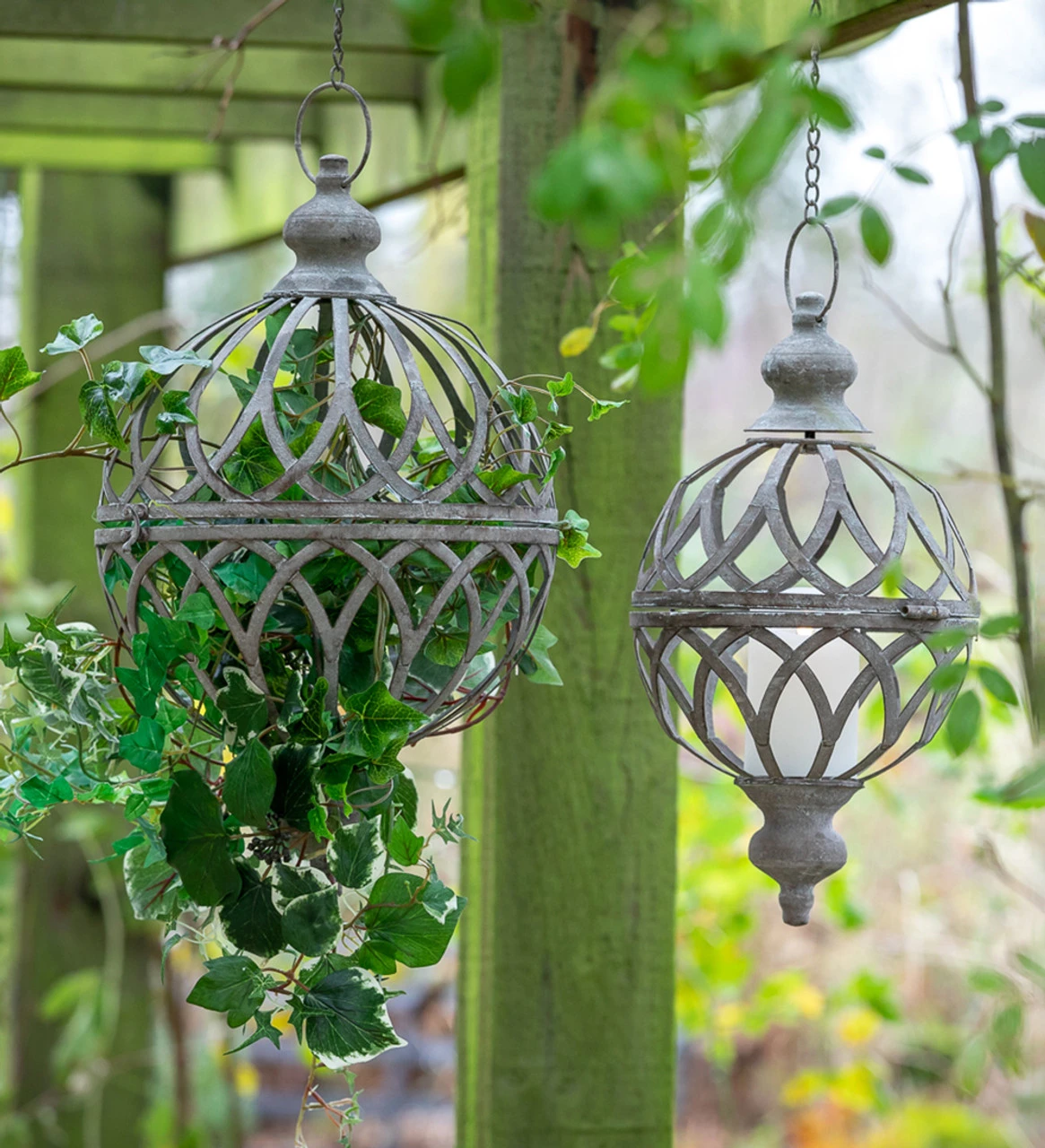 These rustic orb planters provide a unique way to display your trailing houseplants, or can be used outdoors to hang from a tree or hook. Fill with a pot for use as a hanging basket and fill with liner for a spectacular display.