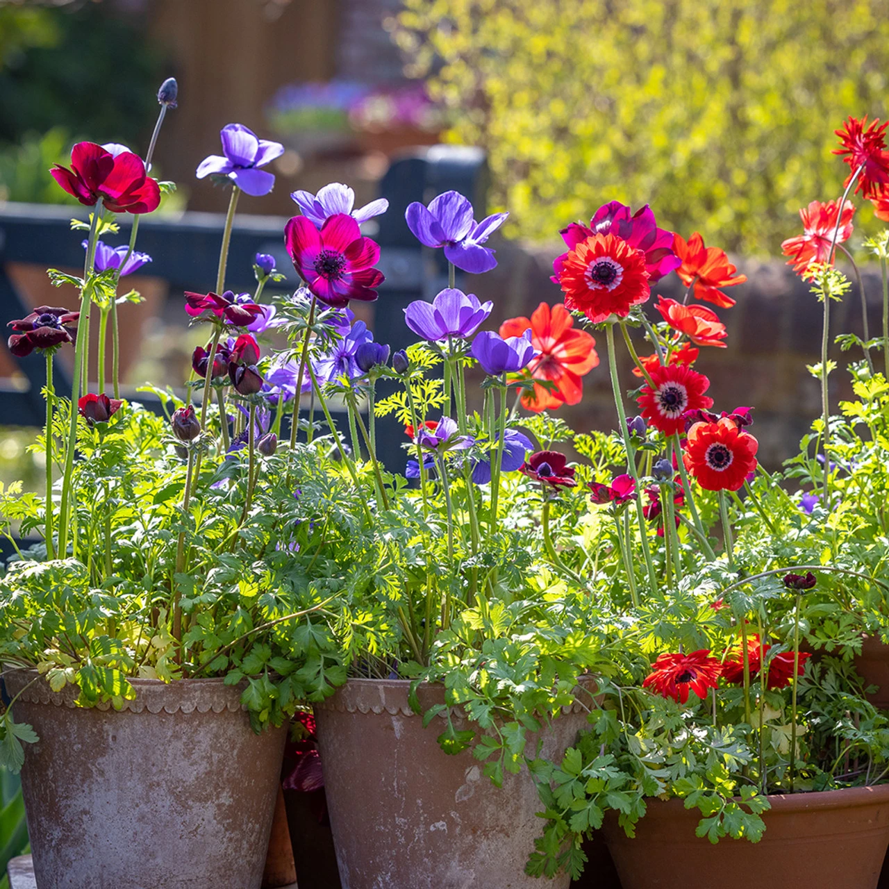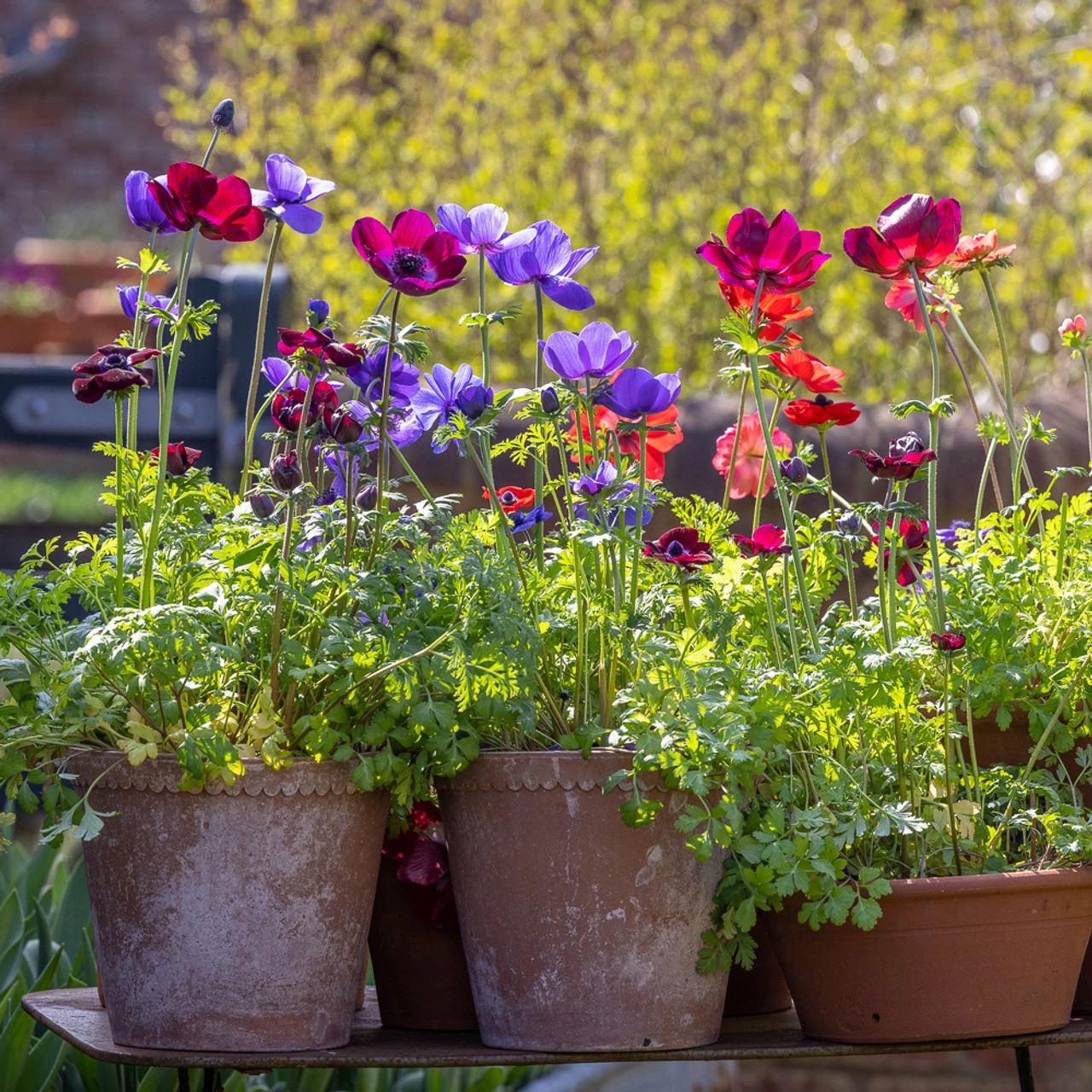 The florist, huge saucer flowered Anemone coronarias are something close to my heart. Having seen them carpeting olive groves in the winter 2018/2019 when we lived in Greece, they take me straight back there to glorious wildflower carpets as far as the eye can see. And, of course, they’re reliably early, here forced in our greenhouse to be brought outside to put on our doorstep to flower away from February to April or even May. If we keep picking, they keep flowering.