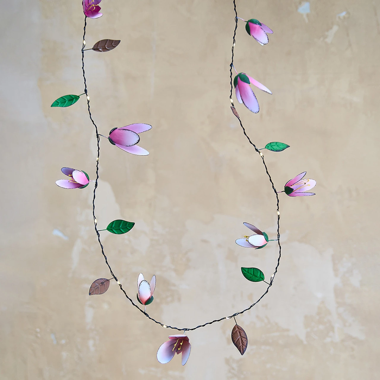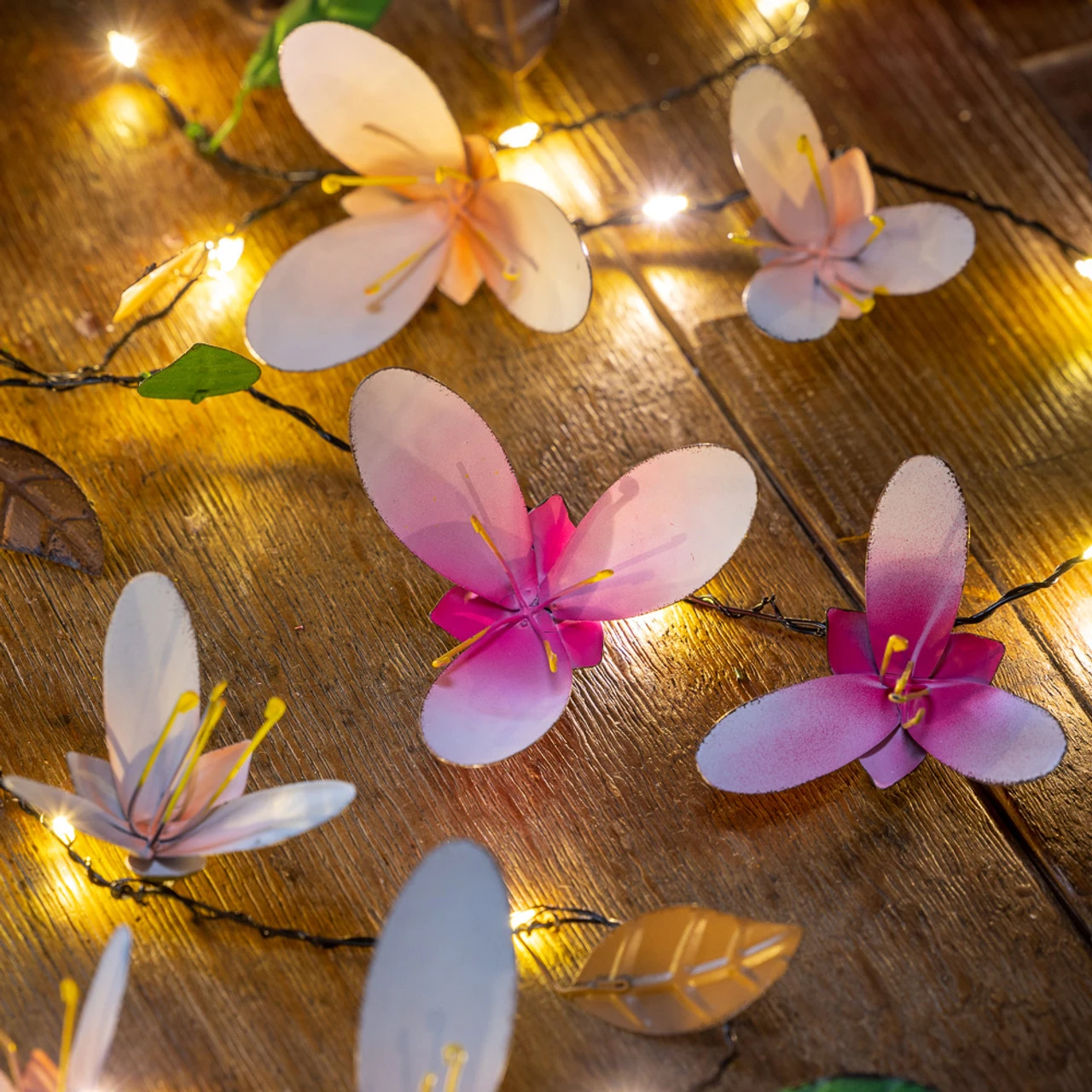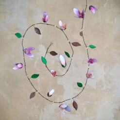 Our beautiful magnolia garland with handmade petals and twinkling white lights. This looks brilliant run down a table either indoors or out.