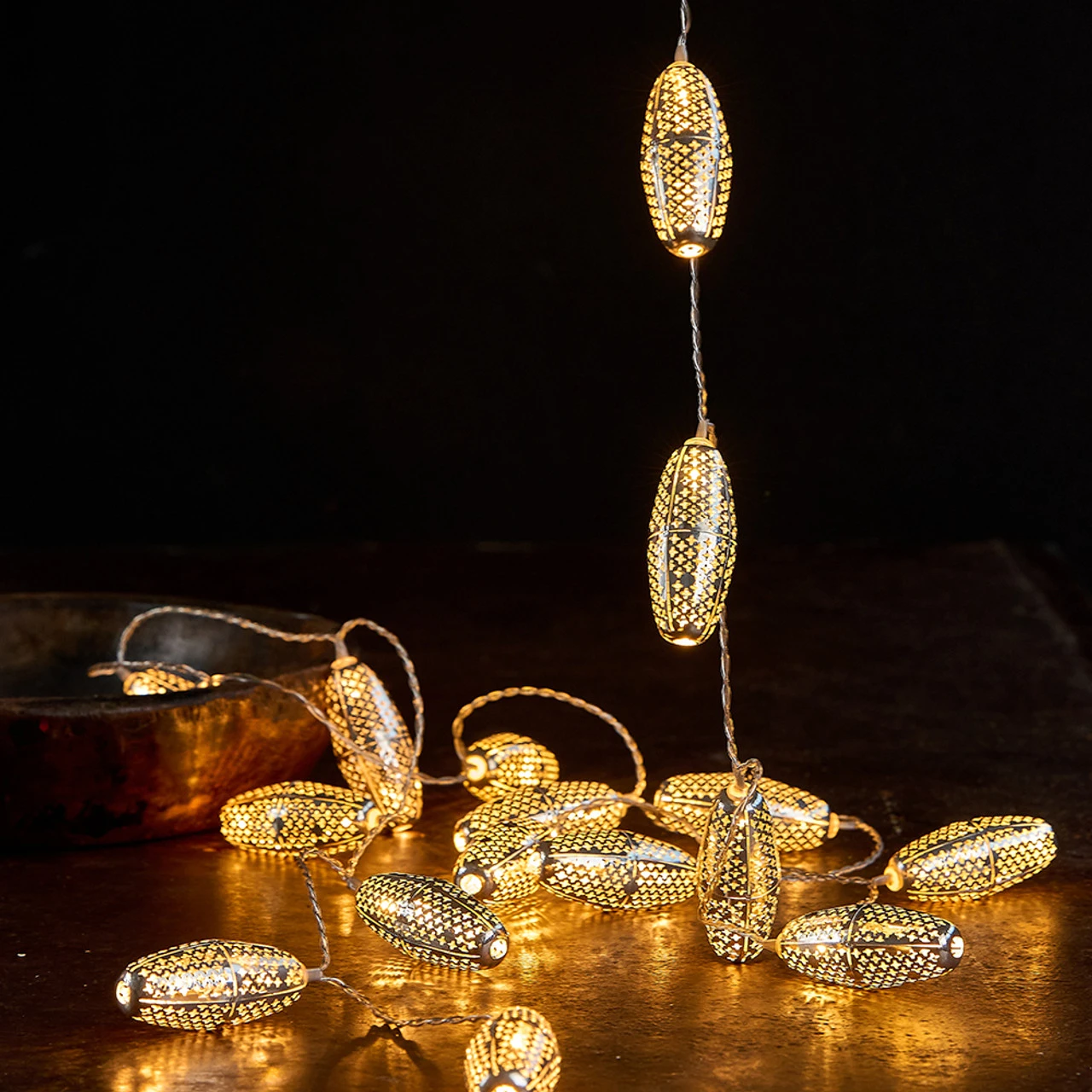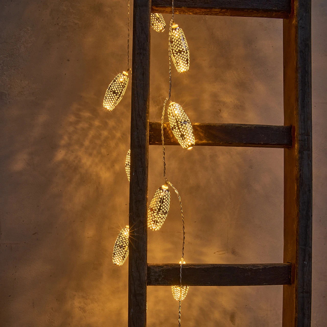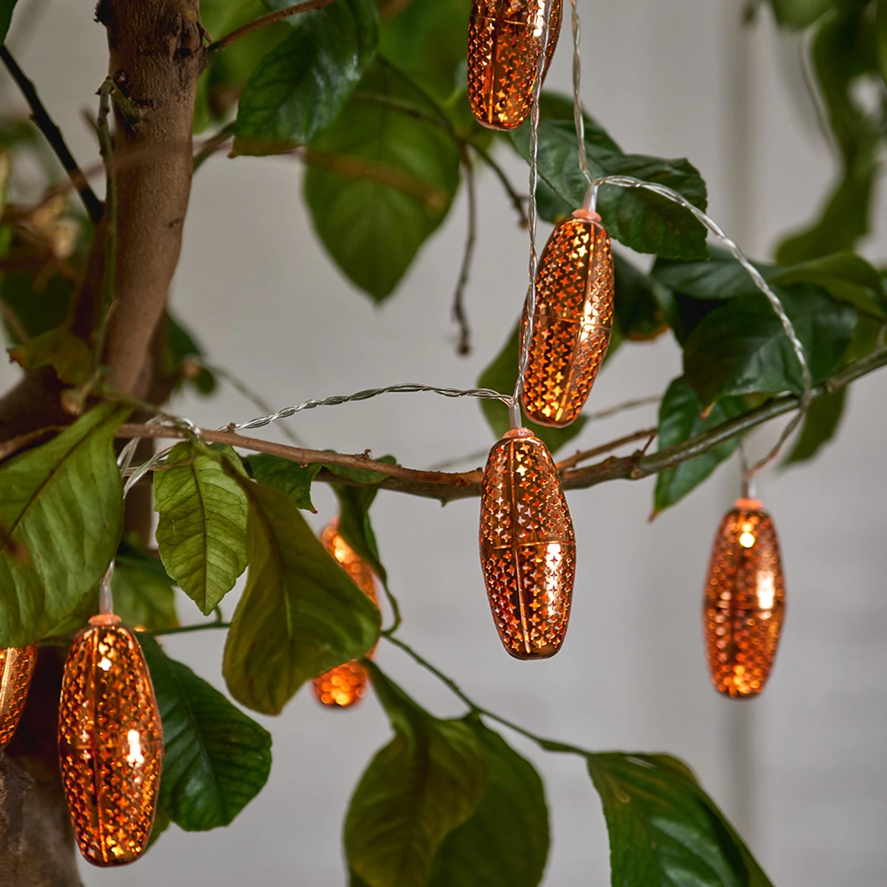 Light up your garden or home with our beautiful Marrakesh light string. The intricate detail casts the most beautiful shadows and looks great hanging from a mantel or run along a tree branch. Solar powered but with the option to switch to battery power for guaranteed glow, even if the weather lets you down. Brilliant all year round.
