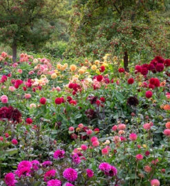 The Ball and Pompom dahlias are having a Renaissance with some exciting breeding turning out great new varieties. I love ‘Copper Boy’ backed up by its mini brother ‘Vino’, their spheres matching the centres of ‘Totally Tangerine’, ‘Rosie’ and ‘Sarah Raven’.