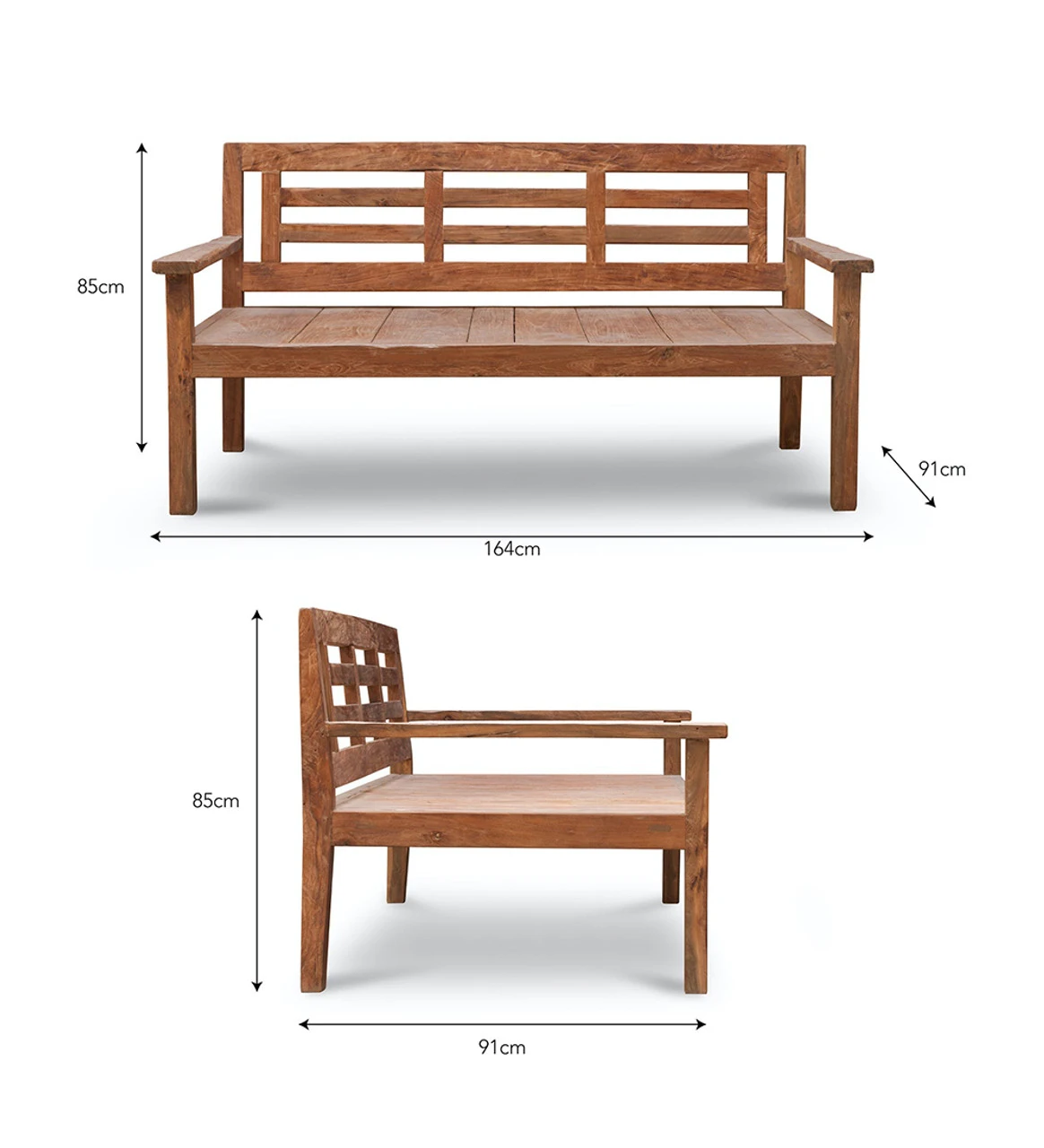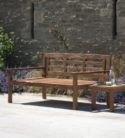 Made from reclaimed teak, each piece is carefully selected by hand adding to its organic aesthetic. The robust material will weather gracefully and can be left outside all year round, although we do advise covering in the winter months. A lovely addition to the patio or decking area, seating two people comfortably for those long summer days.