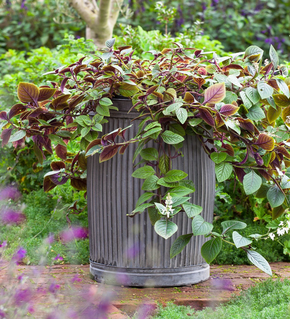 I use pots like this all around my garden for bold and brilliant splashes of colour – for tulips in the spring and cascading pelargoniums and verbenas in summer. They now look like they’ve always been there.