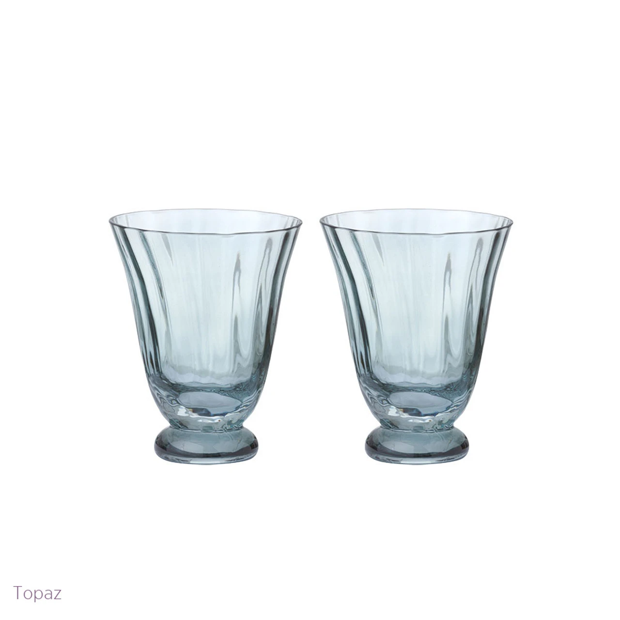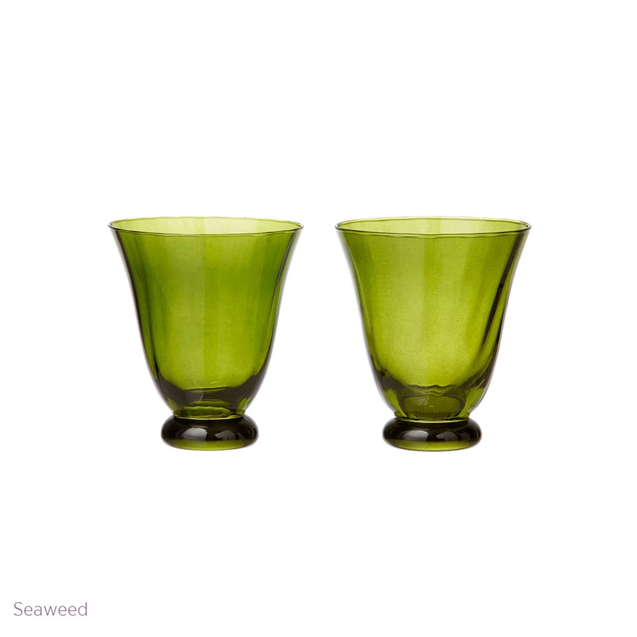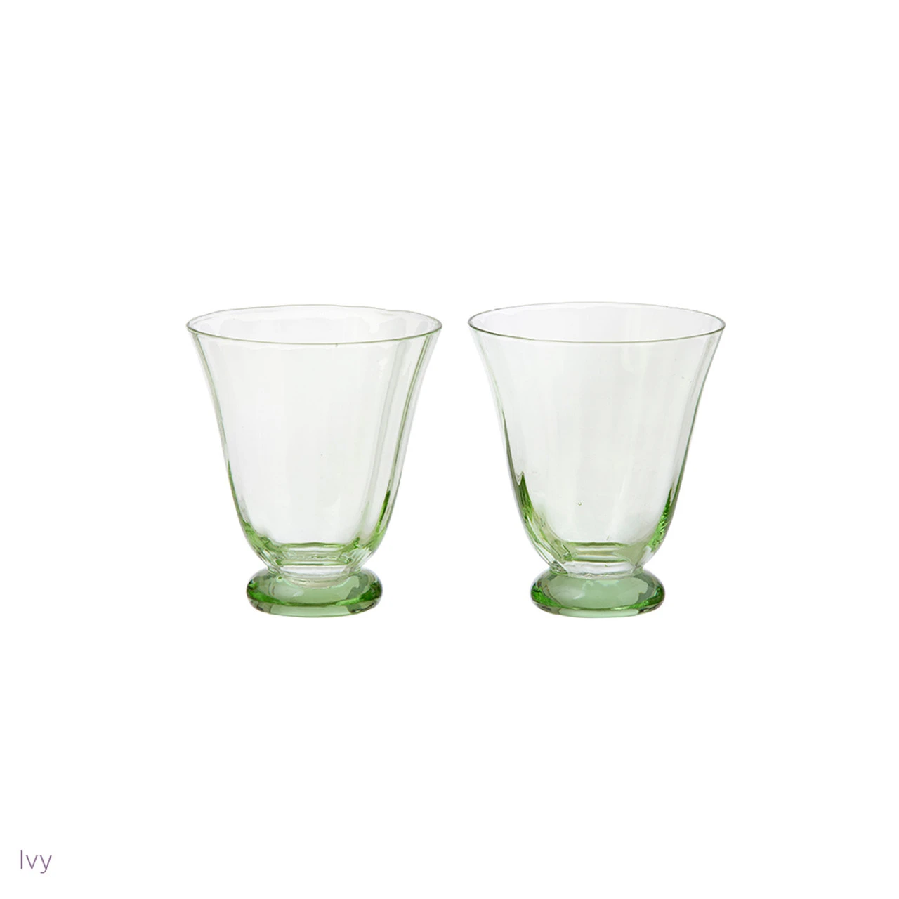 Coloured water glasses in beautiful jewel-like tones. Perfect also to use as small vases, run along a table filled with paperwhites, hellebores or sprigs of eucalyptus.
