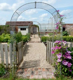 An Agriframes plant support. The intricate and subtle styling of the Round Arch lends itself perfectly to traditional kitchen and cottage garden styles. The welded wirework lattice provides a great support for any climber and enables you to either tie your plants in or let them work their way up the structure naturally.