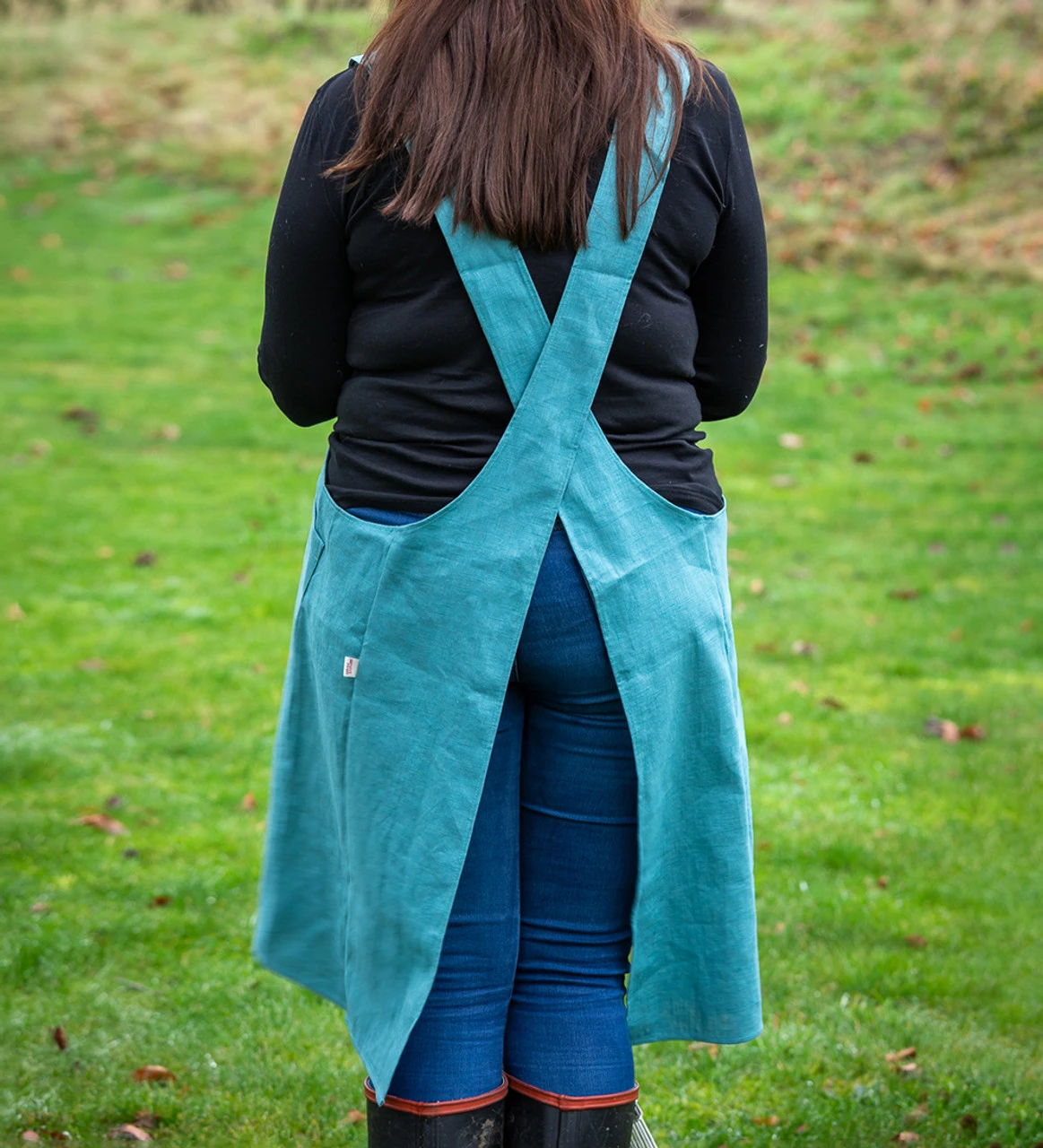 Keep clean in the garden and kitchen with our incredibly soft, easy-to-wear pinafore. It has two deep patch pockets and wide crossover straps at the back. Just chuck it over whatever you’re wearing and it looks good.