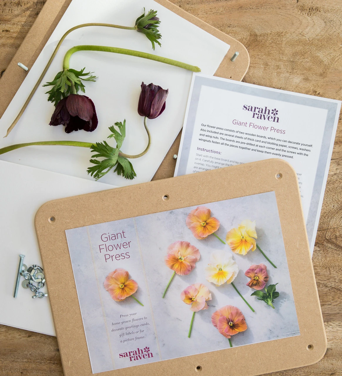 We’ve been on the lookout for a large flower press and here it is. Create your own artwork from your homegrown flowers and put it in frames or add to homemade cards.