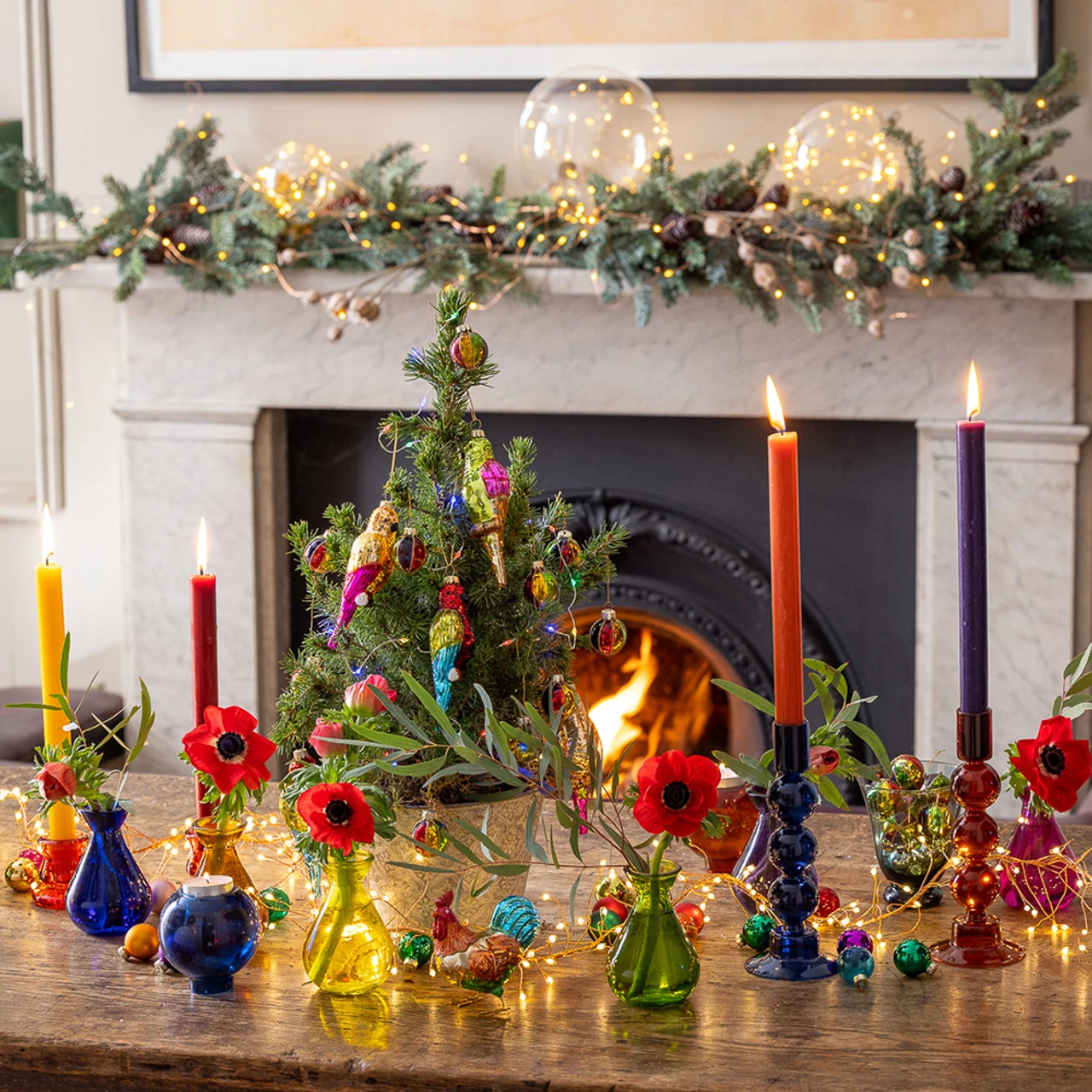 Sarah loves the fabulous shape and the colours of these delicate glass candleholders, creating two new collections with them. For her Sissinghurst collection, Sarah has combined burnt orange with cobalt blue. Available to buy individually or as a set of 2. They look wonderful with our Dinner Candle Sets – try our Venetian Set with the Sissinghurst Collection.