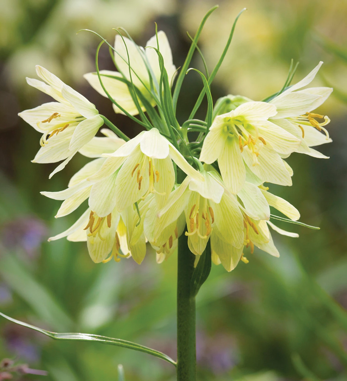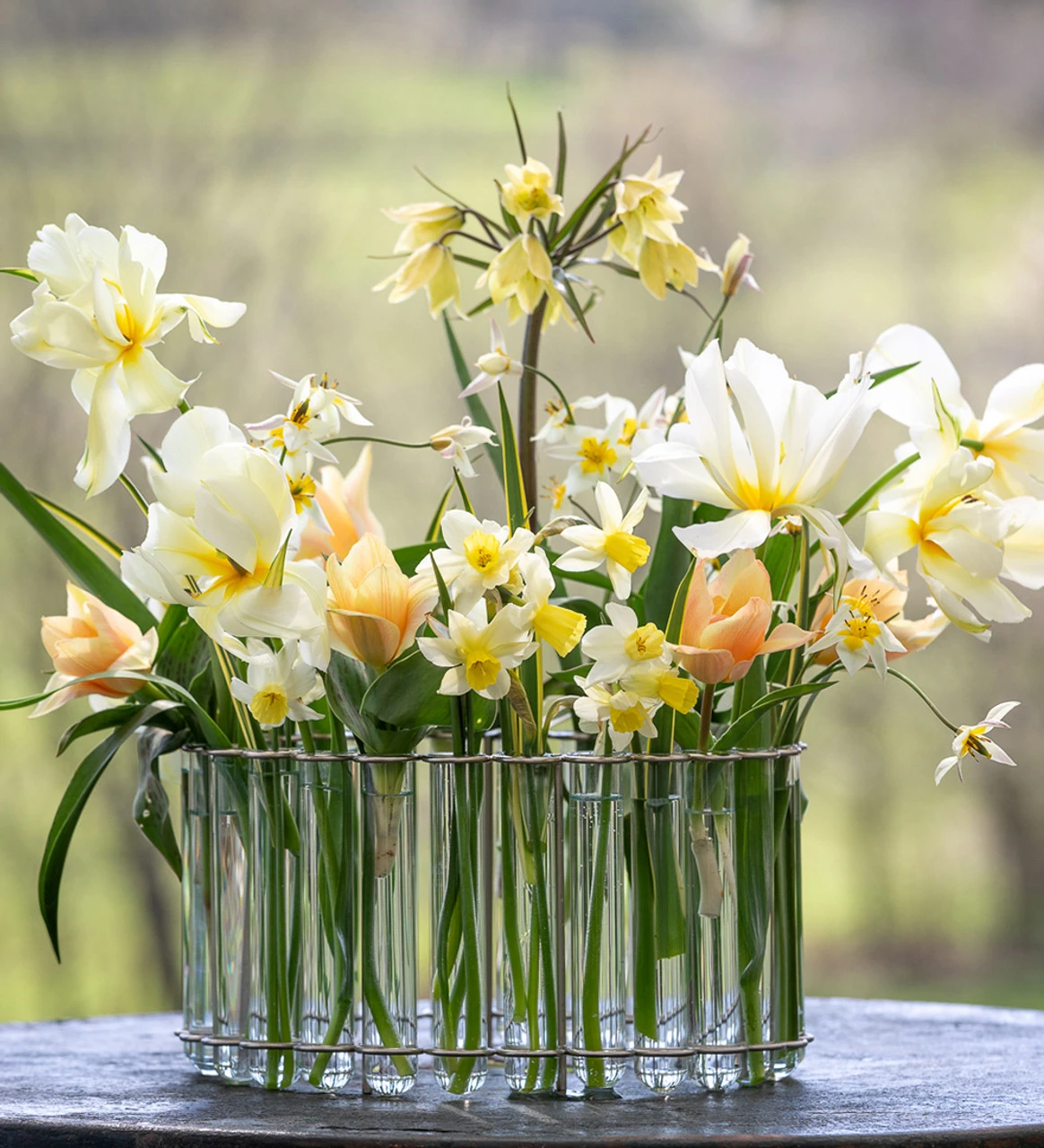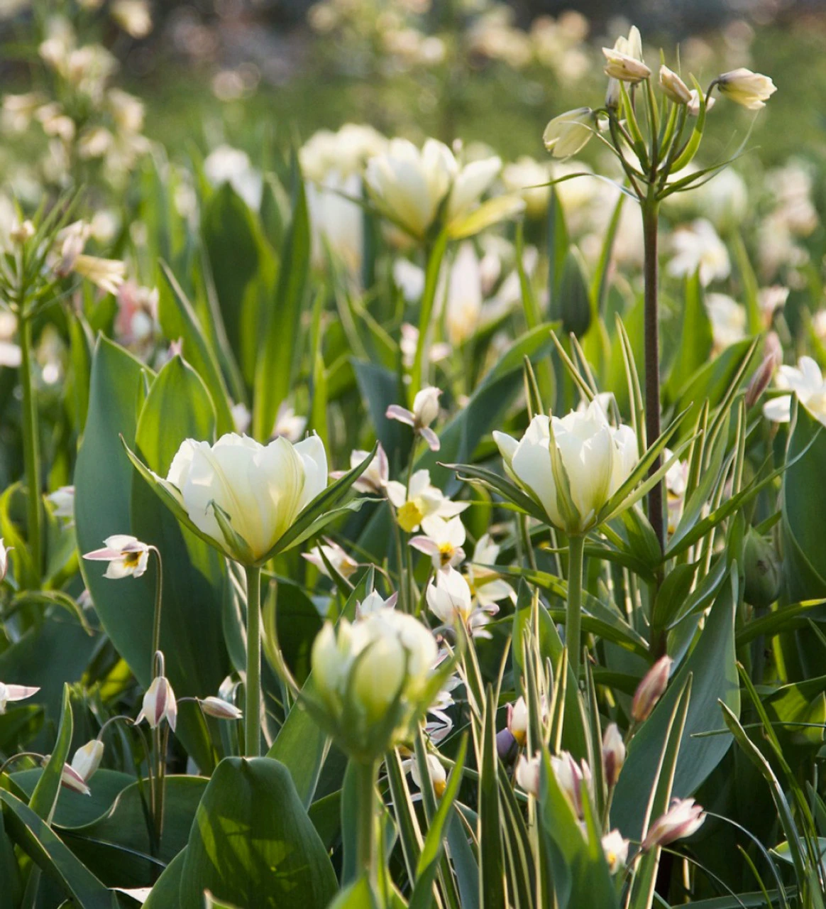 Like the very best bridal gown, we fell on this romantic Carien Van Boxtel combination of fritillaries, camassias, narcissi, species and hybrid tulips in ivory, white and cream. The mixture of flower shapes are perfect, the heights, and soft variation in tone — this once planted, will repeat for years.