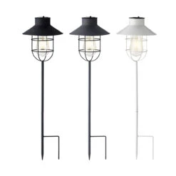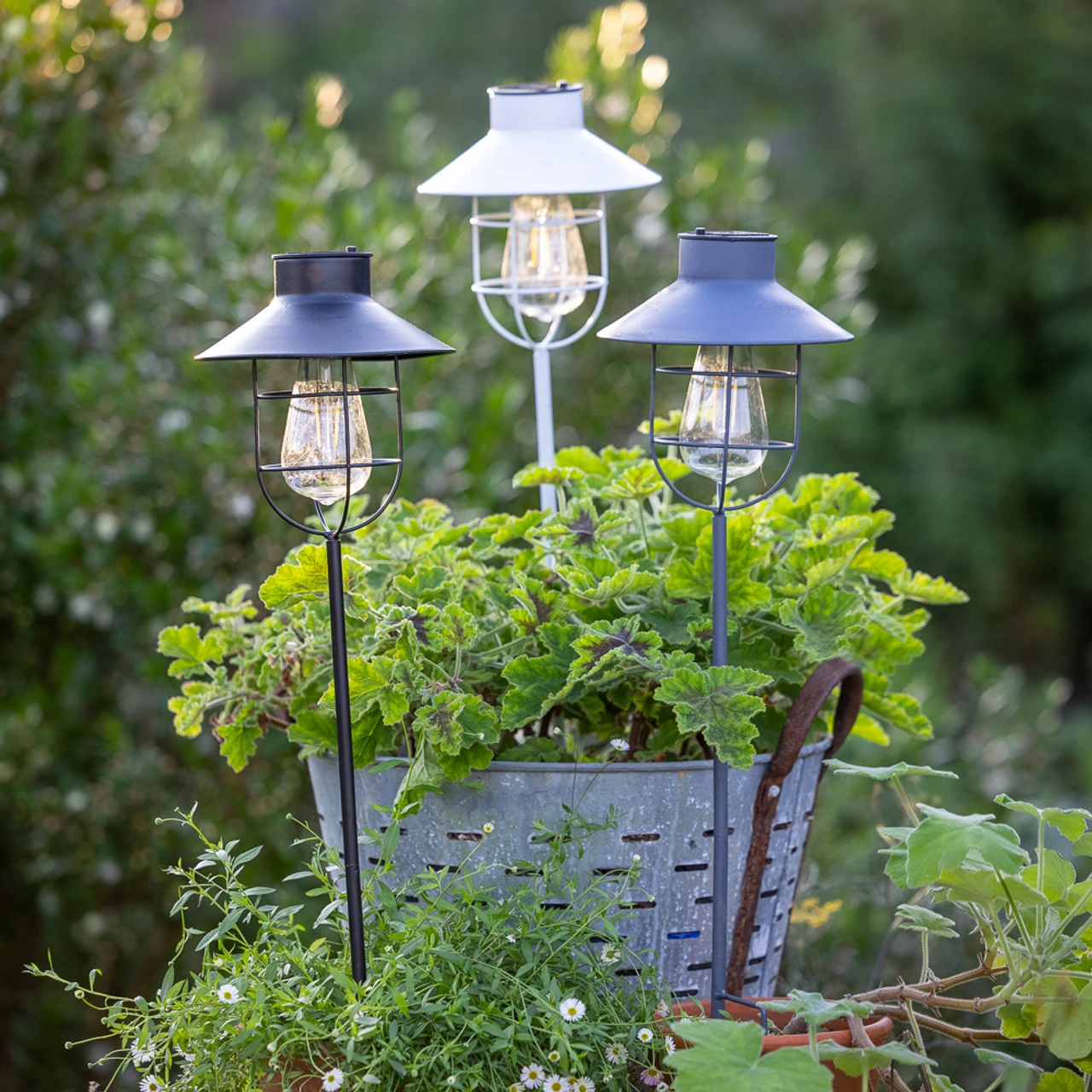 This set of Solar Fisherman Lantern Stakes make the perfect addition to any outdoor space. Features a charming and rustic design, but with a modern twist so it works well with any garden décor and comes in an assorted set of White, Black and Grey. One Warm White ‘filament’ LED gives the effect of a traditional hurricane style lamp.