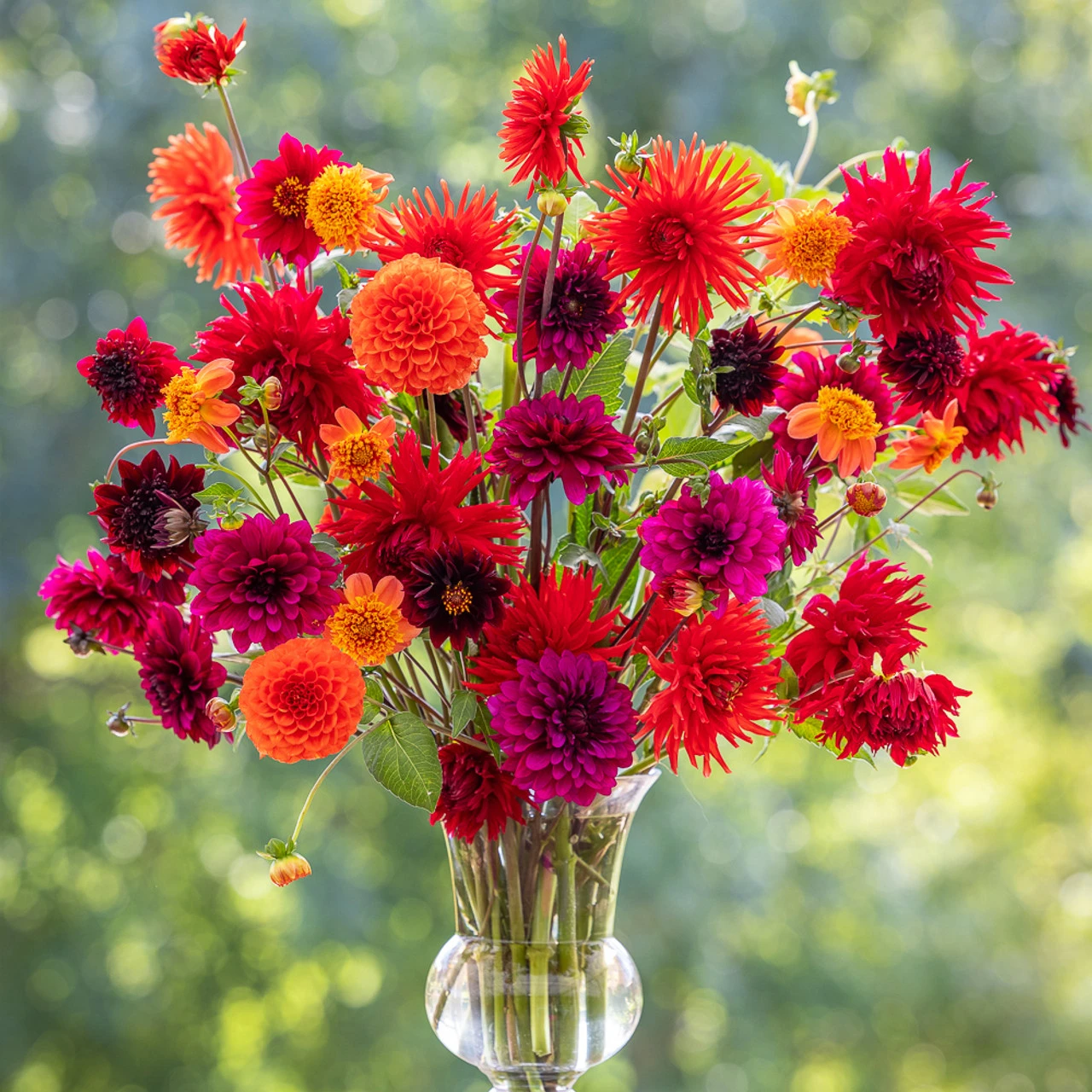 Whenever I see these dahlias together, they remind me of stained-glass windows or a brand-new box of crayons. Incredibly bright, undiluted colour and vibrancy, these are total life-enhancers.
