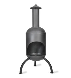 A handsome, modern take on the traditional chimenea. The fire bowl has a galvanised grill to set the wood on, raising it off the ashes whilst the tall chimney draws the smoke out and away from the seating area.