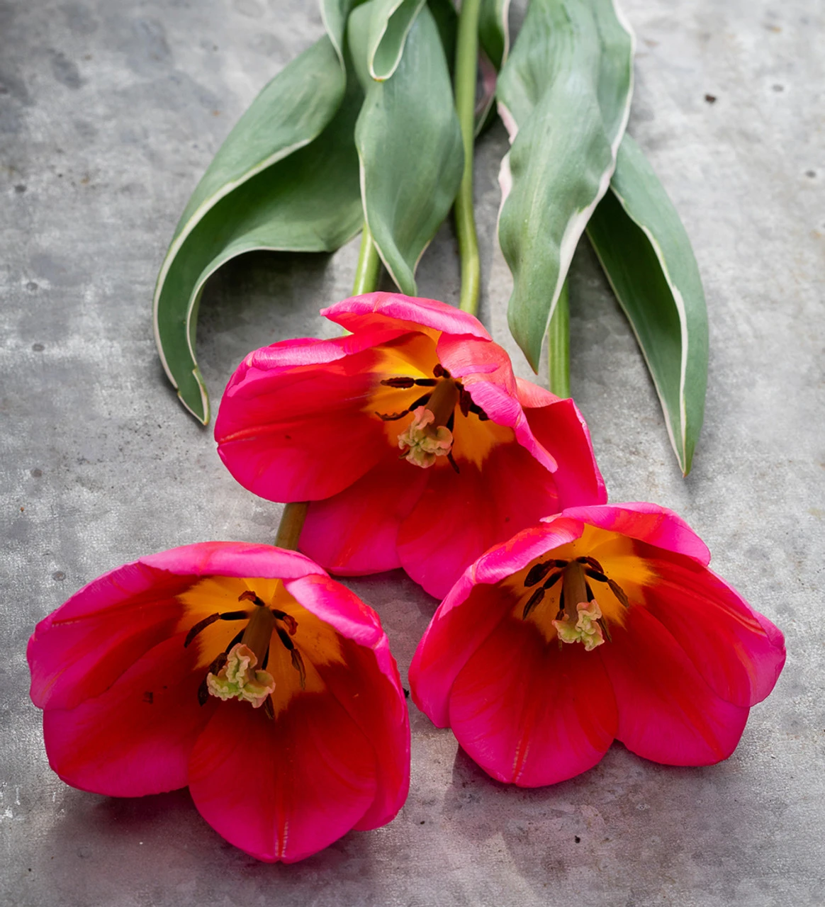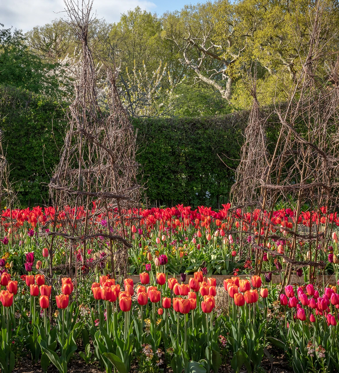 Don’t plant tulips until mid-late October. Plant pointy end up 10-15cm deep, 8cm apart in borders (less in containers). You can use a mycorrhizal Bulb Starter. After flowering leave the foliage to die back naturally if you want to reuse the bulbs.