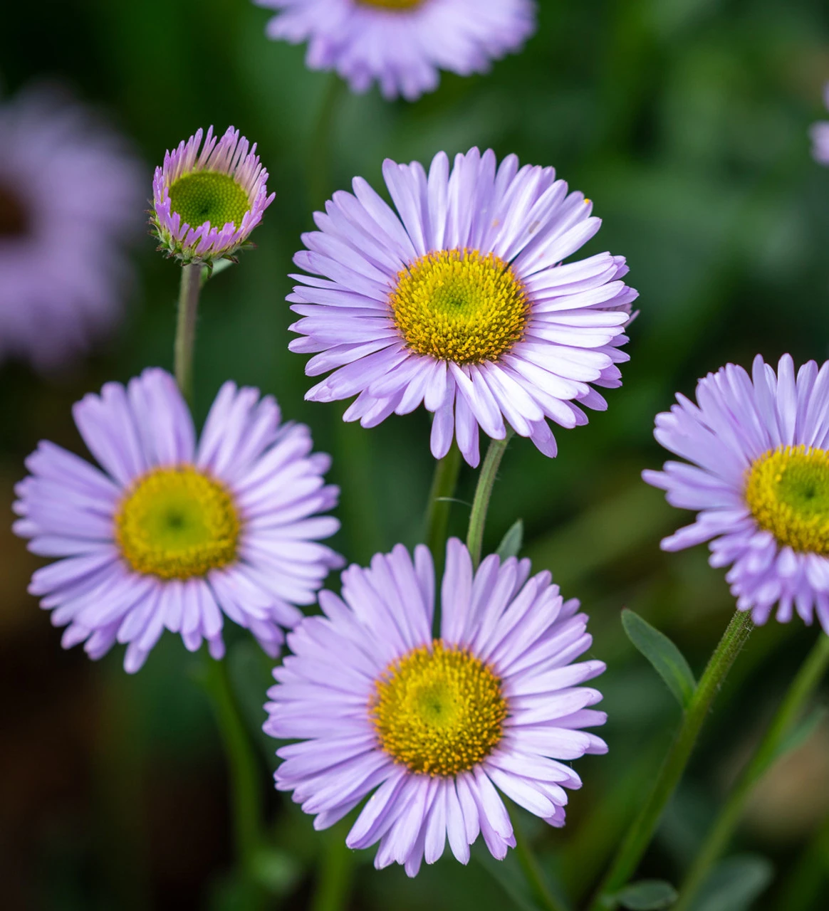 We are crazy about this new erigeron. The saucer flowers are aster-like in a soft mauve and it is of course perennial, so grows bigger and better year on year. It’s our new must-have best find for low-maintenance perennial pots, which we add to with different annuals. This matching-toned lobelia was our favourite pairing with it last summer.