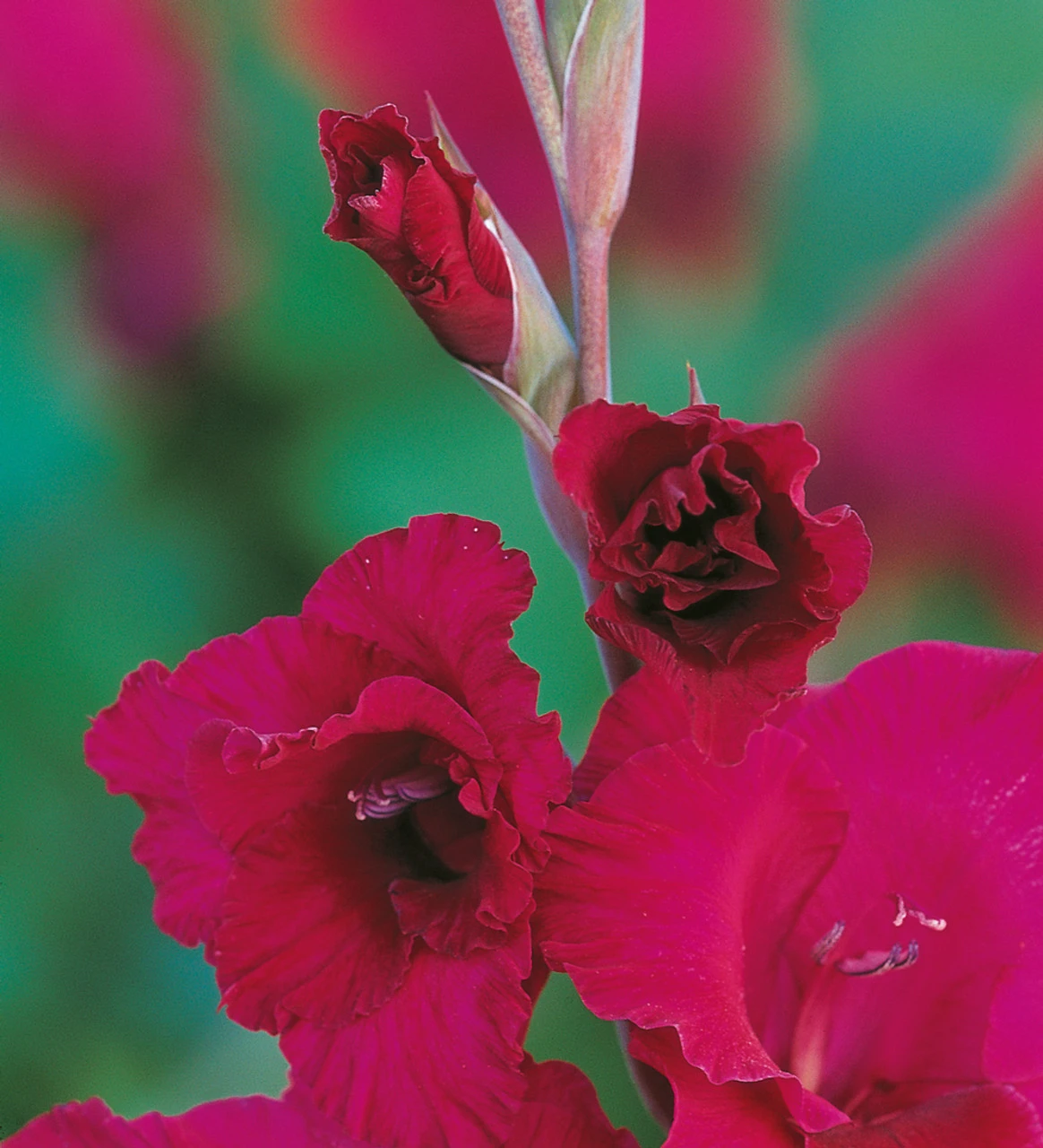 It’s hard to beat this classy mixture of the three most superb textured and coloured gladioli.