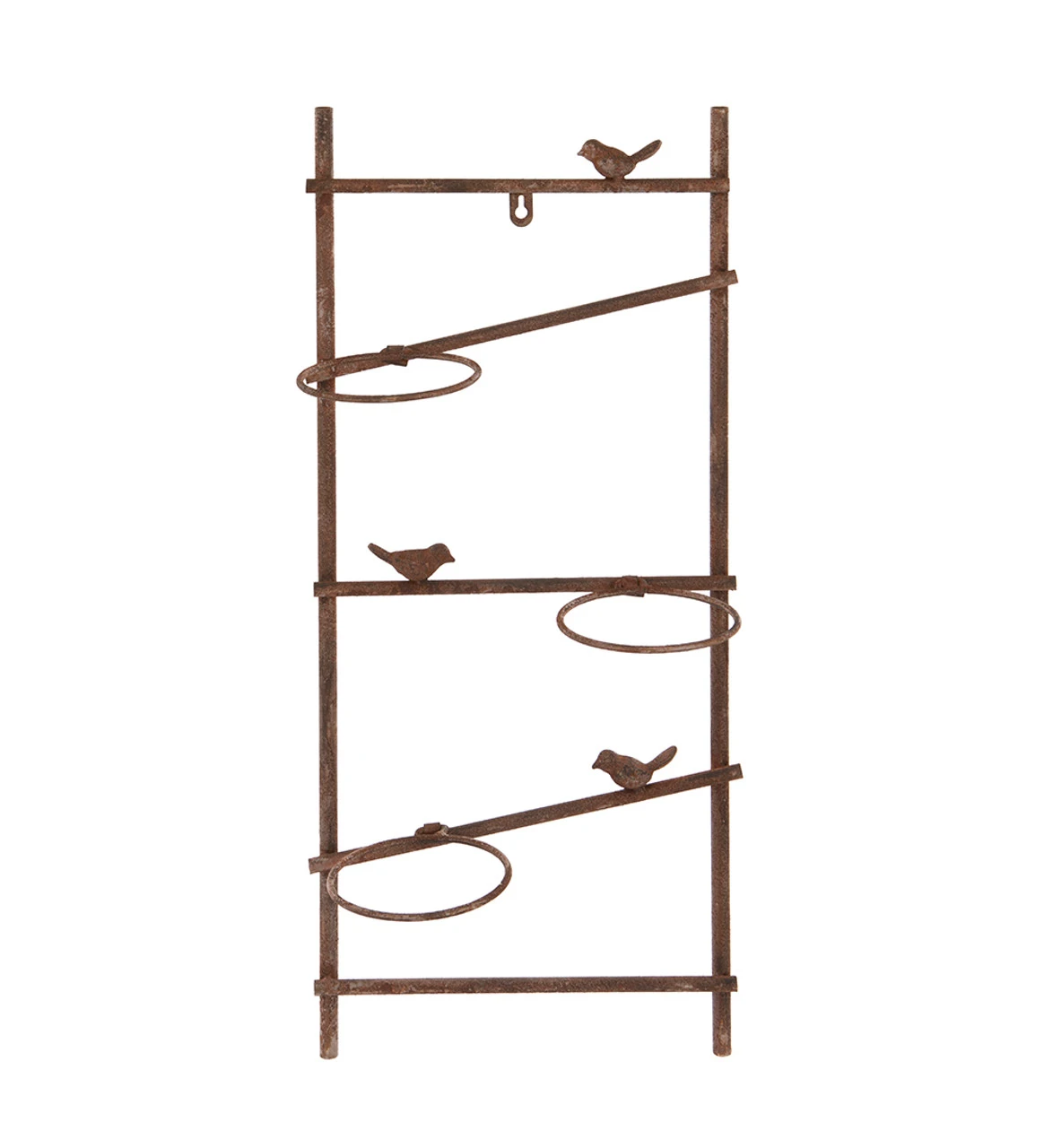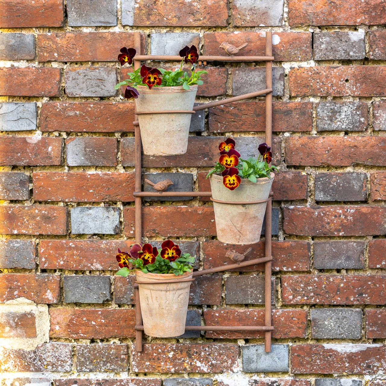 A lovely way to brighten up a wall, this rustic Wall Pot Holder can support three pots.
