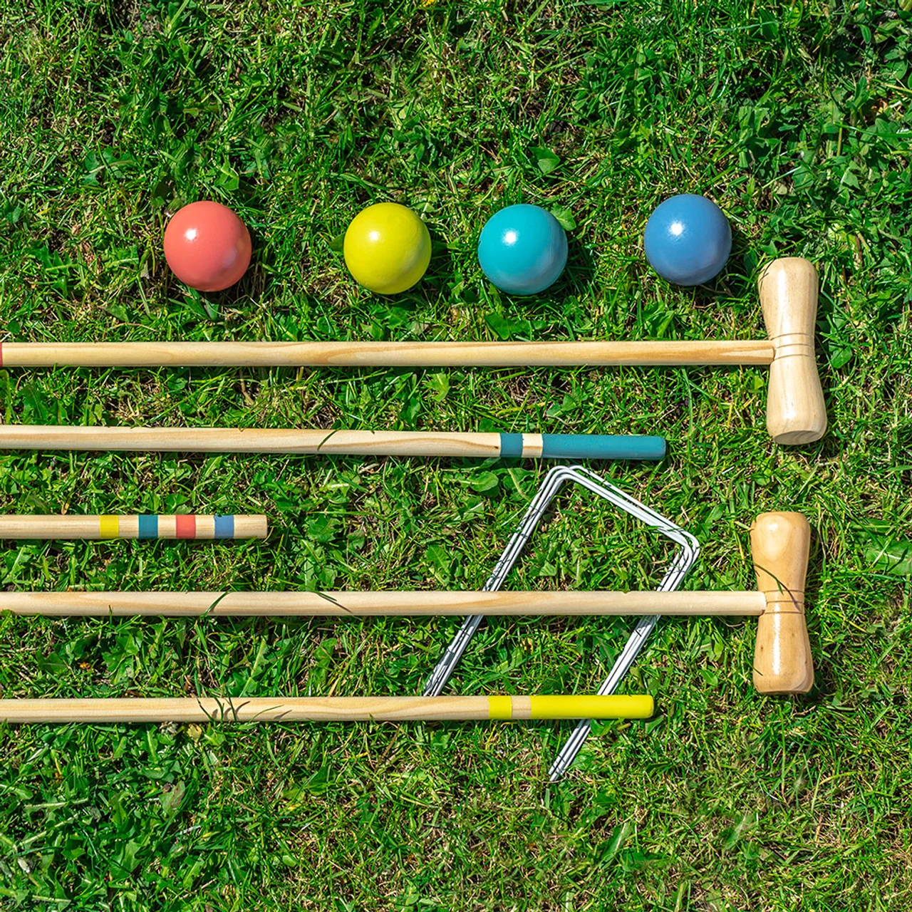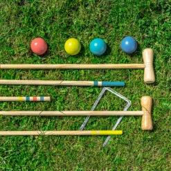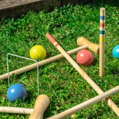 A classic Wooden Croquet Set, the quintessential lawn game for a summer afternoon, perfect for a garden party. Easy to set up and store away.