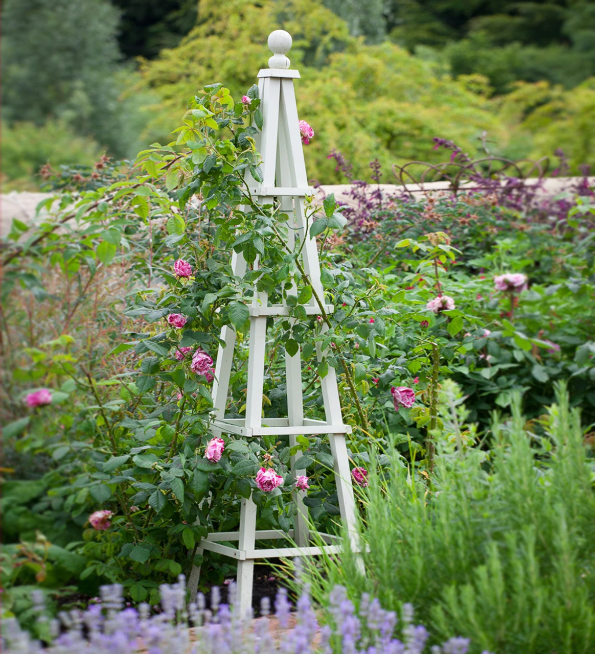 Our softwood obelisk is long-lasting and good for compact climbers in beds or borders.